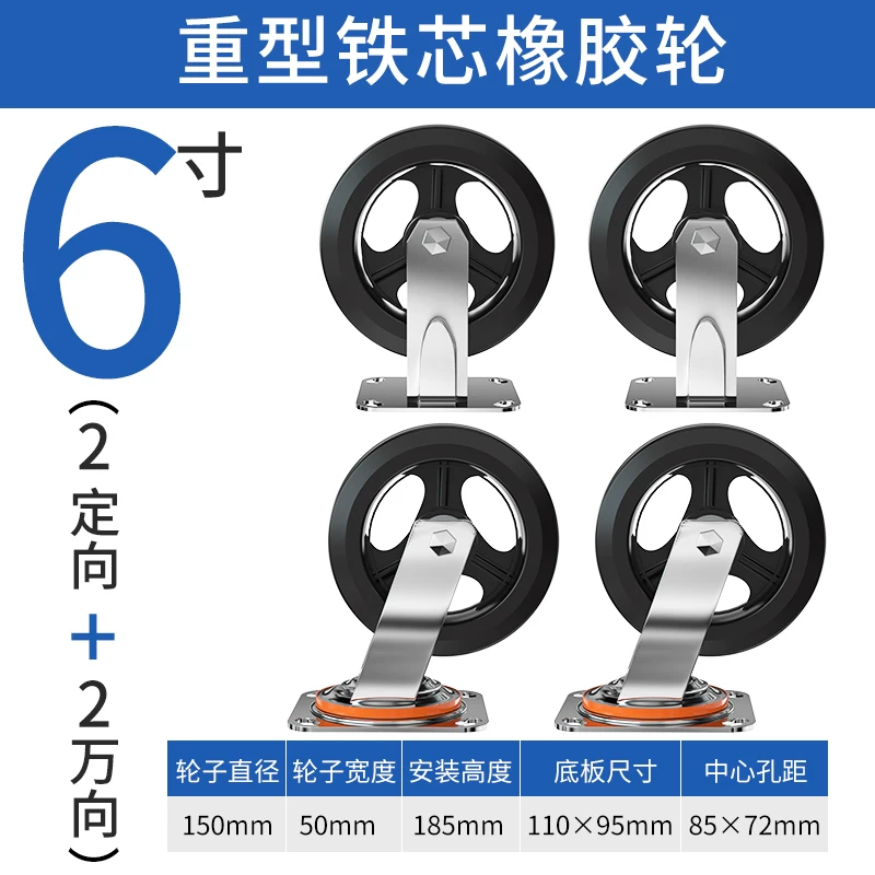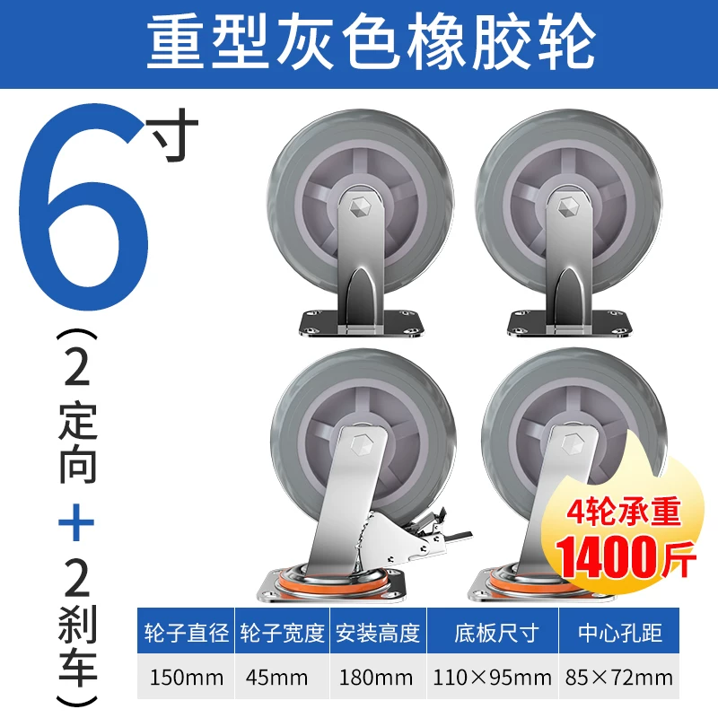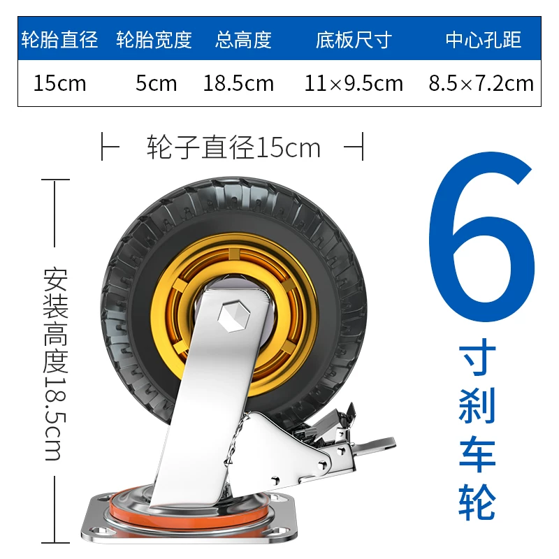 mâm 16 inch 4 lỗ Bánh xe phổ thông 6 inch bánh xe cao su im lặng hạng nặng tay lái cố định có phanh trục Bánh xe kéo xe đẩy 458 inch mâm 16 inch 4 lỗ thanh lý lazang 13 Mâm xe