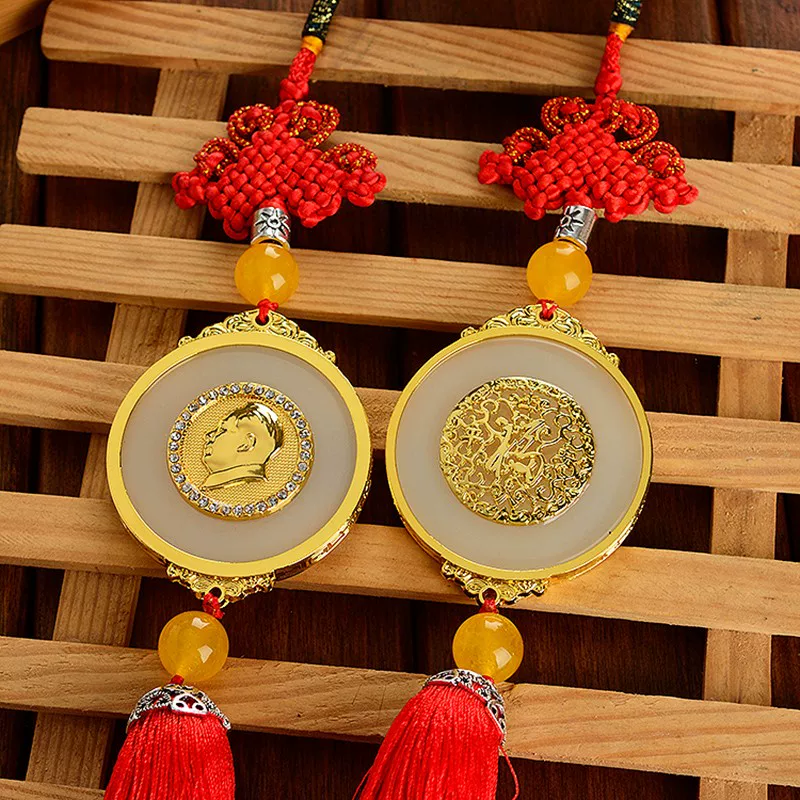 Mặt dây chuyền ô tô Mao Chủ tịch, mặt dây chuyền ô tô cao cấp, gương chiếu hậu, mặt dây chuyền chân dung Mao Trạch Đông, bùa hòa bình dát vàng ngọc thảm taplo đệm ghế văn phòng