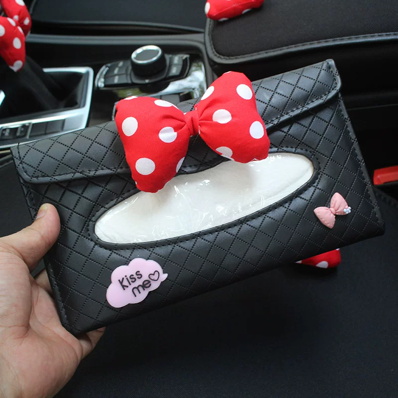 Nơ dễ thương tựa đầu xe hơi gối thắt lưng phim hoạt hình mùa hè xe hơi che phanh tay hộp số tay cầm đai an toàn vai nữ bọc vô lăng da nappa bọc vô lăng xe ô tô