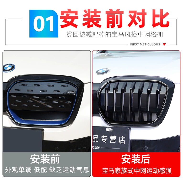 Thích hợp cho 20-22 tấm lưới tản nhiệt giữa BMW iX3 vá lưới tản nhiệt phía trước sửa đổi diện mạo samurai đen phụ kiện gioăng cửa nhôm kính gioăng cao su cửa sắt