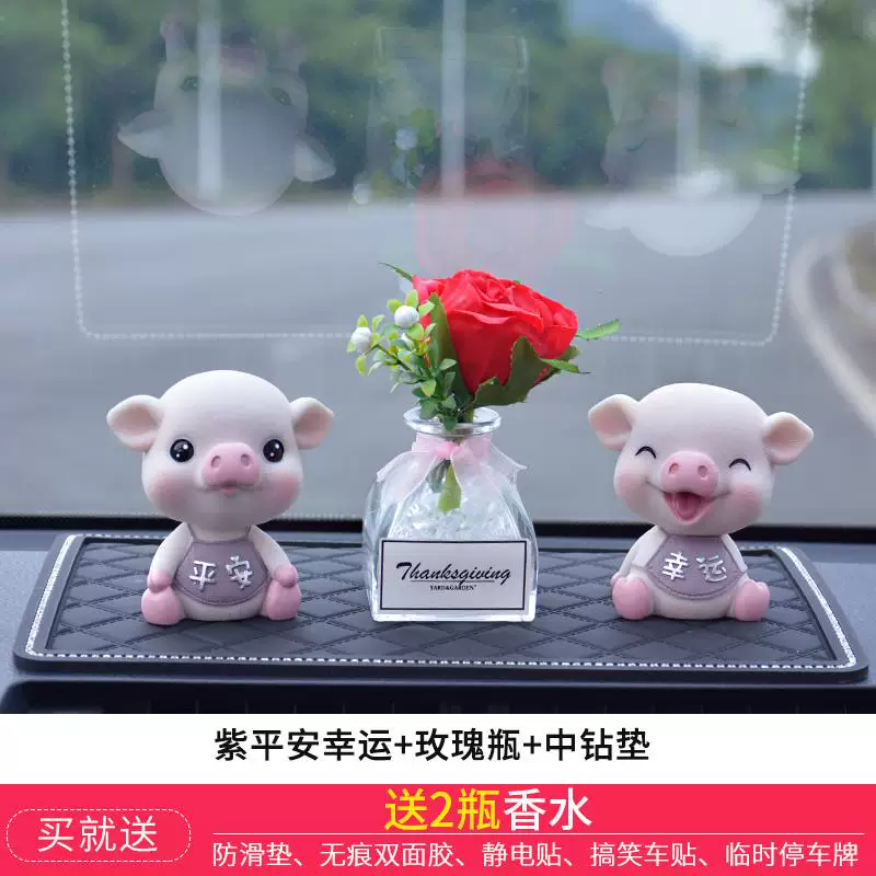 Trang sức xe trang trí trang trí làm rung chuyển đầu của chiếc xe lợn, màu đỏ bên trong, trang trí xe hơi cao cấp dễ thương trải sàn da ô tô thảm taplo da