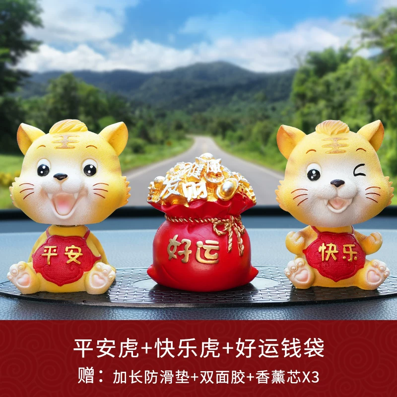 Xe Little Tiger gắn trên ô tô 2021 Vật tư trang trí bảng điều khiển trung tâm mới Bộ sưu tập hoàn chỉnh của Năm con hổ Trang trí nội thất ô tô miếng lót ghế gỗ